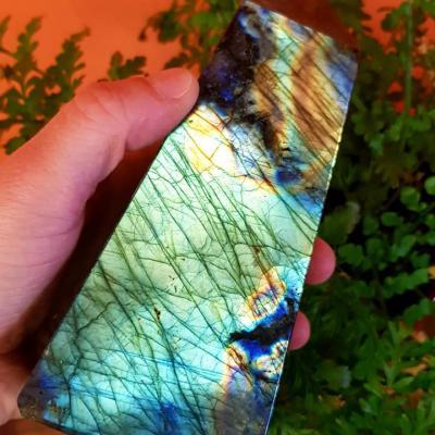 Pierre de protection, la Labradorite agit comme un bouclier contre les énergies négatives en les absorbant, jusqu'à complète dissolution.